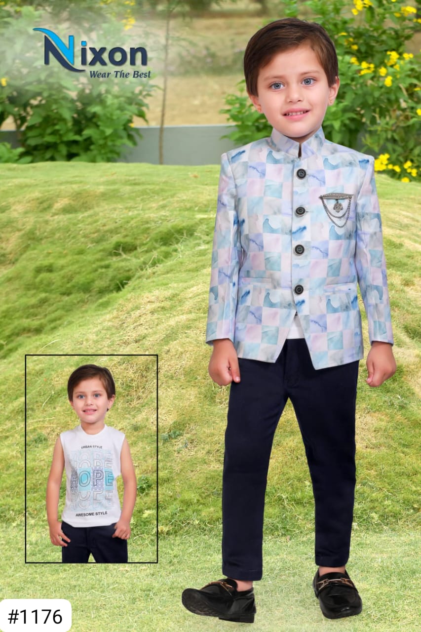 | Sizes are available from New born to 3 year baby boy.... Coat suit for kids is generally regarded as a casual outfit that's often accompanied by a dress suit Jaket having imported lycra fabric with 200+ GSM and shirt having Cottan and knitted pent having 400+ GSM |